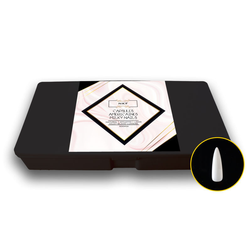 CAPSULES AMERICAINES NKF MILKY NAILS NATURAL STILETTO LONG BLANC LUMIERE